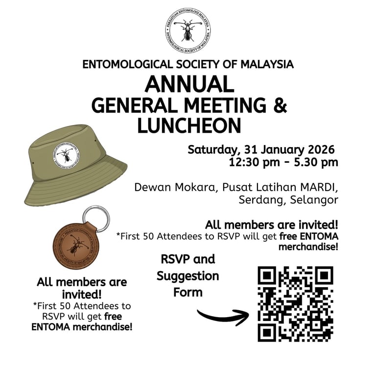 We are pleased to announce that the Annual General Meeting (AGM) of the Entomological Society of Malaysia (ENTOMA) will be held as follows: